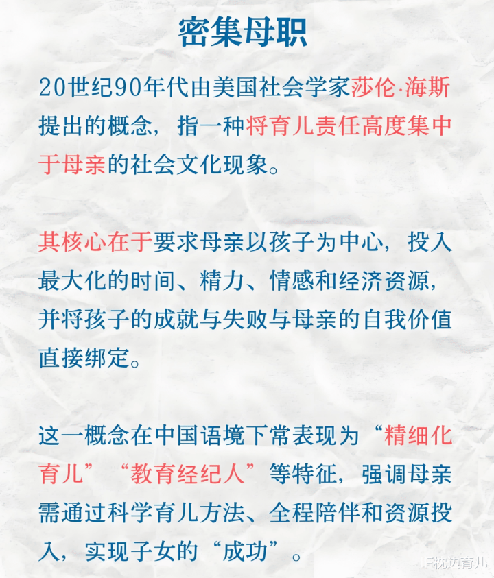 看过一个学术概念叫【密集母职】,是说所有育儿责任都压在妈妈身上。这样的做法,真的很累,而且随着孩子长大,你会发现,父亲好像自动消失了,再也不靠近孩子了。